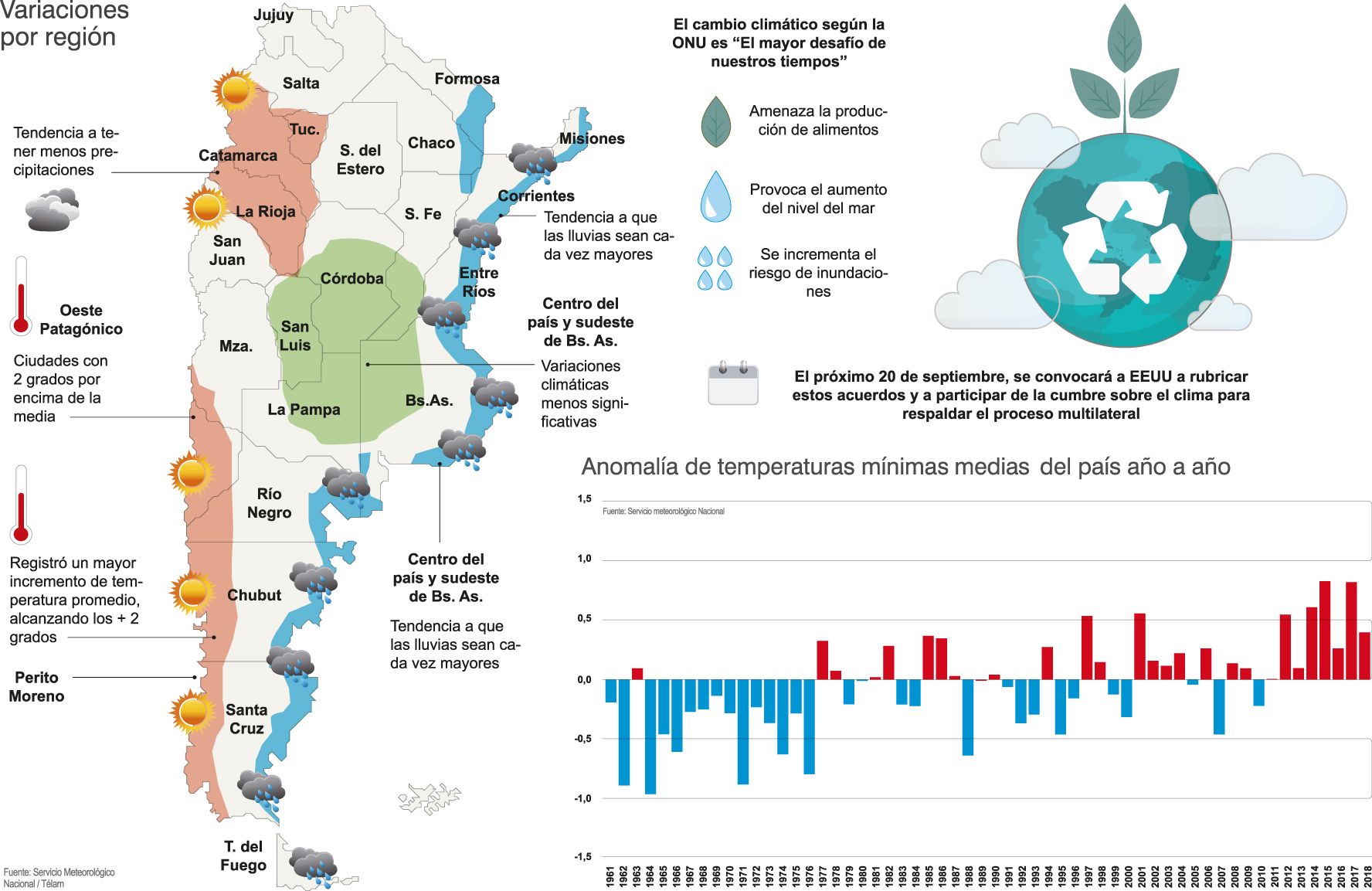 ‘En nuestro país hubo un aumento de temperaturas. Los cambios más significativos se dan en el oeste patagónico donde observamos que hay ciudades con 2 grados por encima de la media, mientras que en la región central y el sudeste de Buenos Aires las variaciones fueron menos significativas‘, precisó Fernández.