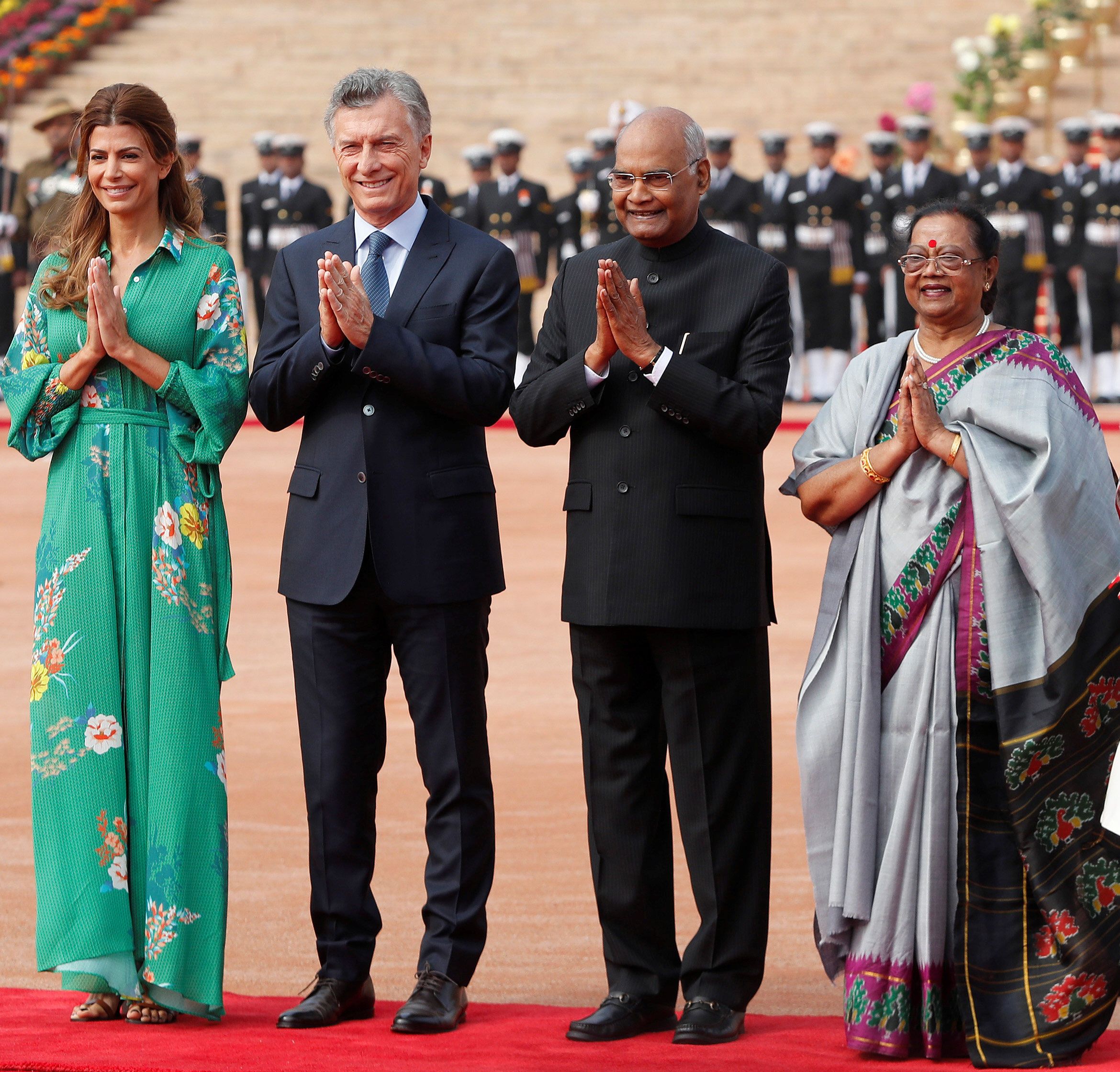 En compañía. Los presidentes de Argentina y de India realizaron sus saludos protocolares junto a sus respectivas primeras damas. Luego hubo acuerdos.