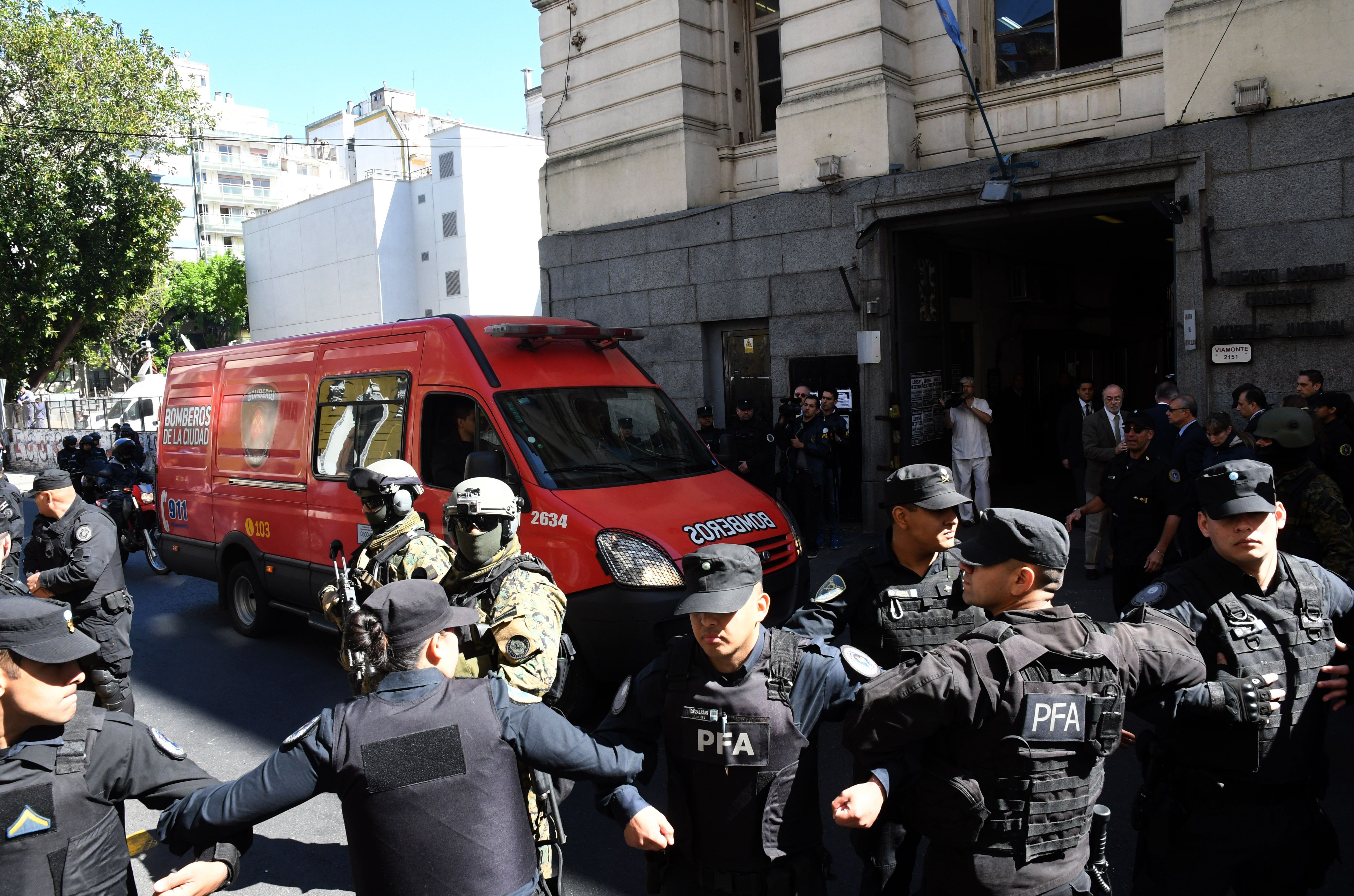 En la morgue se montó un cordón de seguridad especial que permitió el paso del móvil de Bomberos que trasladaba el cuerpo y detrás el auto en el que se movilizaba el juez y el perito de la familia, que fueron recibidos en la puerta por el director de la morgue Fernando Trezza.