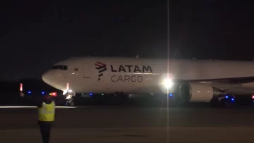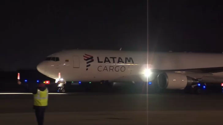 El Boeing 767-300 de la empresa Latam Cargo Colombia, con el número de vuelo UC1101, aterrizó a las 18.57 en el aeropuerto internacional de Ezeiza con 1.349.700 dosis del suero desarrollado en conjunto por la Universidad de Oxford y el laboratorio AstraZeneca, y cuyo componente activo se produce en el país.