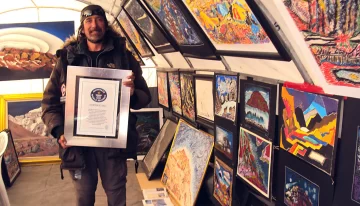 Este artista plástico porteño, formado en la escuela Prilidiano Pueyrredón, contó a Télam por teléfono que "hoy es un día excepcional, tenemos 10 grados, con 8 de sensación térmica y sin viento, cuando lo normal es cerca de los 2 grados y nieve; eso sí, hay muchísima radiación ultravioleta".