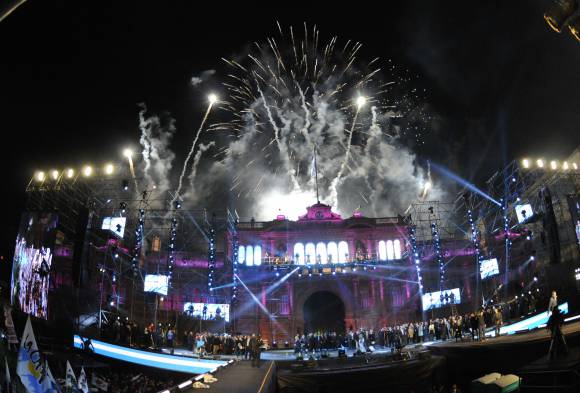 Al ritmo de Música Ligera, de Soda Stereo y con los fuegos artificiales iluminando el cielo, la mandataria hizo correr al personal de seguridad cuando se fue al frente del escenario para saludar a la multitud, que escuchaba los temas de Patricio Rey y luego con Charly García. Luego el show continuó con la Casa Rosada iluminada y la imagen del Cabildo detrás.