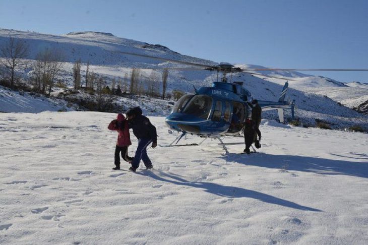 El matrimonio junto a sus dos hijas se encontraban refugiados en una vivienda ubicada en la localidad de Varvaco, Neuquén, cuando los sorprendió un fuerte temporal de nieve y se debieron montar un operativo que incluyó un helicóptero y motos de nieve.