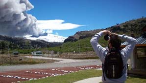 El último informe de este mediodía determinó que la erupción era "freática menor, que afecta principalmente las zonas cercanas al cráter y con caída de cenizas las zonas aledañas proximales".