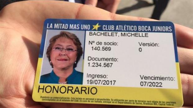 Bachelet recibió el carnet con el número 140.569 de manos de la dirigencia xeneize, que además le obsequió una camiseta con su nombre y el número 10 que usaron en su momento Diego Armando Maradona y Juan Román Riquelme.