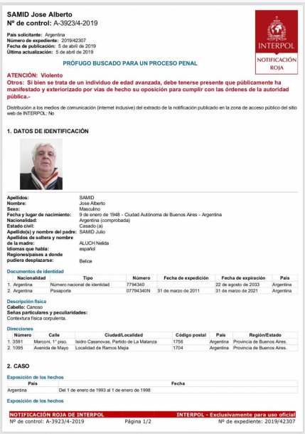 A primera hora de este viernes, Interpol emitió un alerta roja para capturar al empresario de la carne Alberto Samid. Según la notificación lo buscan en Belice, luego de que se lo viera por última vez en el aeropuerto de Panamá antes de tomarse un avión hacia el Caribe.