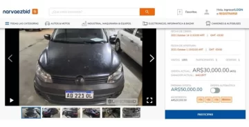 A través del sitio narvaezbid.com.ar el Banco Santander realiza una subasta de autos por ejecución prendaria que arranca con vehículos desde $30.000 hasta $710.000.