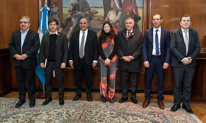 El encuentro de hoy, celebrado en horas del mediodía en el Palacio de Haciendo, contó con la participación de los gobernadores de Buenos Aires, Axel Kicillof; de Catamarca, Raúl Jalil; de Neuquén, Omar Gutiérrez; de Santiago del Estero, Gerardo Zamora; y de Tucumán, Osvaldo Jaldo, informó la Jefatura de Gabinete a través de un comunicado.