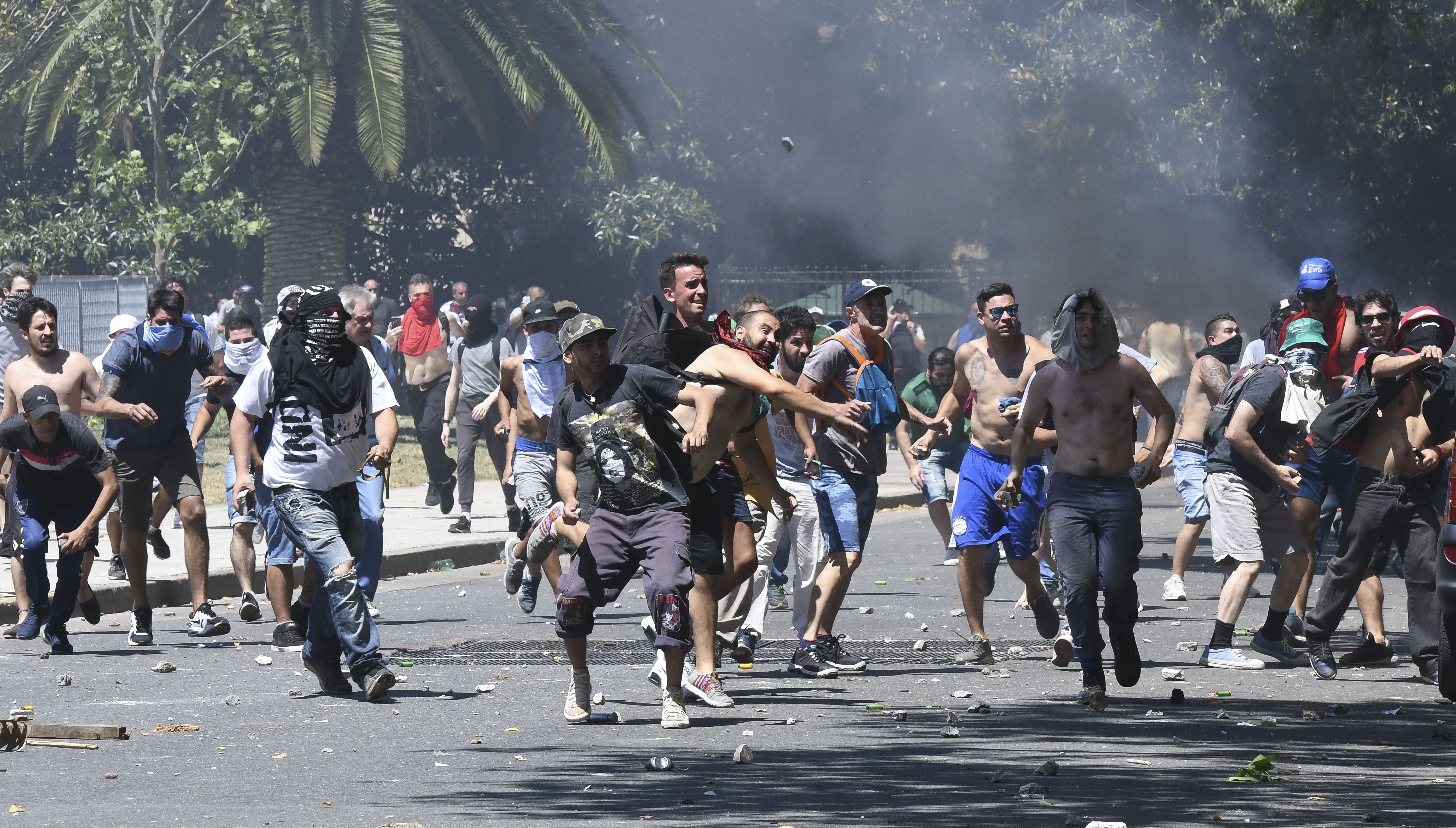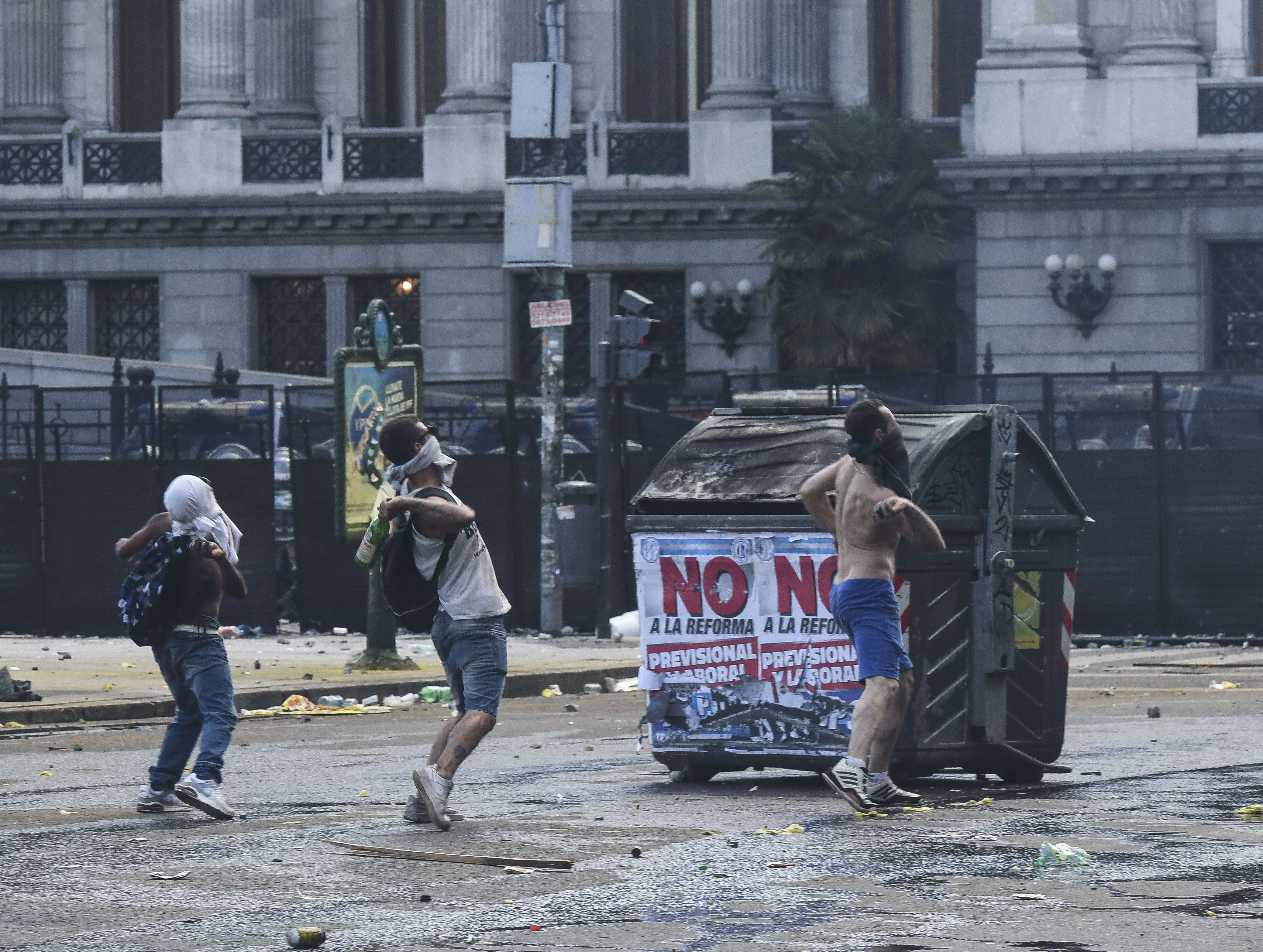 Los enfrentamientos siguieron largamente aun después de que fracasara la sesión en Diputados para debatir la reforma previsional. Es que un grupo de entre 50 y 60 encapuchados seguía destruyendo todo a su paso y sólo se replegaban por momentos para reagruparse y volver a arremeter contra las fuerzas de seguridad que los hacía retroceder momentáneamente con los gases lacrimógenos.