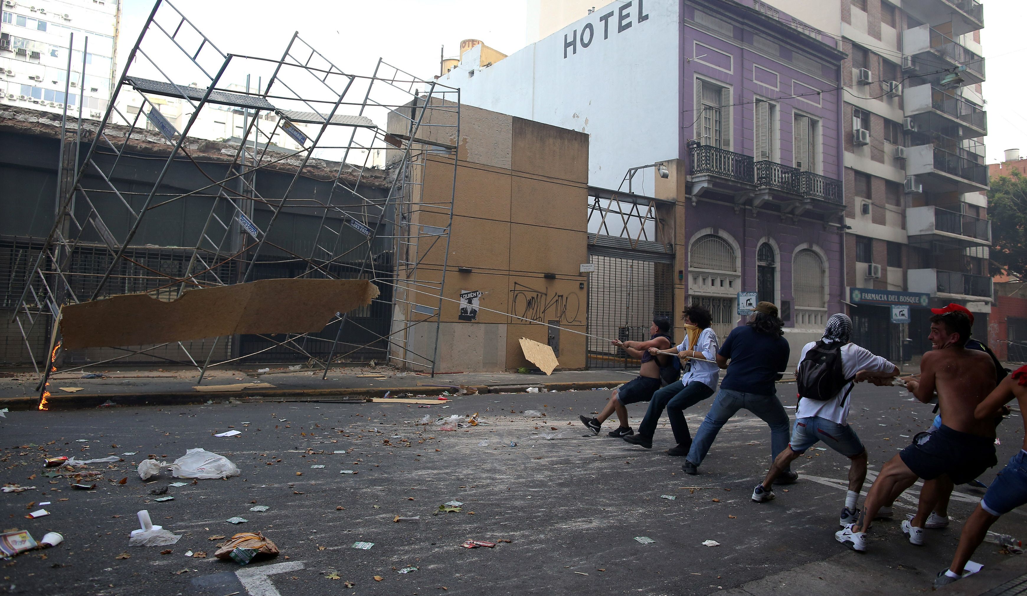 Grupos de manifestantes, en su mayoría portando banderas del Movimiento Socialista de los Trabajadores (MST), del Partido Socialista de los Trabajadores (PTS) y del Polo Obrero, intentaron derribar vallados para impedir el tratamiento de la reforma previsional.