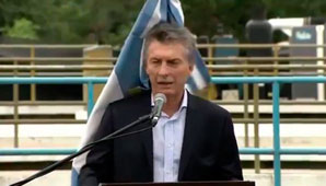 Formosa.- El presidente Macri vivió un incómodo momento durante un acto. Mientras daba un discurso en Formosa, donde anunciaba la construcción de una planta potabilizadora de agua y la ampliación de la red de agua potable, la Bandera Nacional se le cayó en la cabeza.