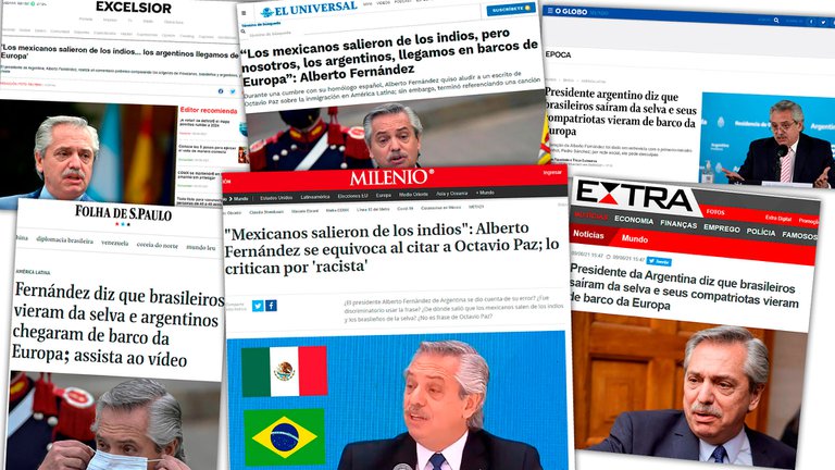 En tanto, los medios de Brasil y México también se hicieron eco de las repercusiones. “El presidente argentino dice que los brasileños salieron de la selva, sus compatriotas llegaron en barco desde Europa”, tituló el diario local O Globo. En esa sintonía se expresó Folha do Sao Paulo: “Fernández dice que los brasileños salieron de la selva y los argentinos llegaron en barco desde Europa”.