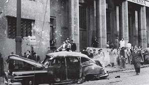 Buenos Aires, 16 de junio.- Un jueves frío y gris, la Plaza de Mayo se convertía en un escenario del horror: a las 12:40, treinta y cuatro aviones de la Marina de Guerra con el capitán de Fragata Néstor Noriega al frente, iniciaron el bombardeo que se continuaría hasta casi las seis de la tarde, dejando un saldo de 364 muertos, más de 800 heridos y una destrucción nunca antes vivida por los argentinos.