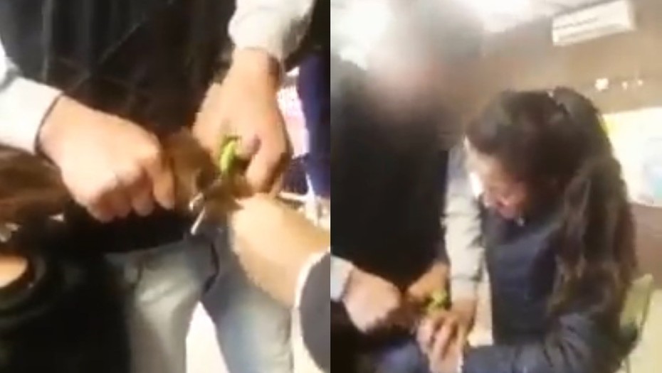 Se trata de un breve video, grabado por uno de los alumnos de 1° B de la escuela, en el que se ve cómo le cortan el pelo a una compañera de la clase. Ella no quería, sin embargo entre risas y burlas lo hacen igual, disfrutando de la angustia de la víctima. Lo más terrible es que el curso estaba a cargo de un docente que no hizo nada para controlar la situación.