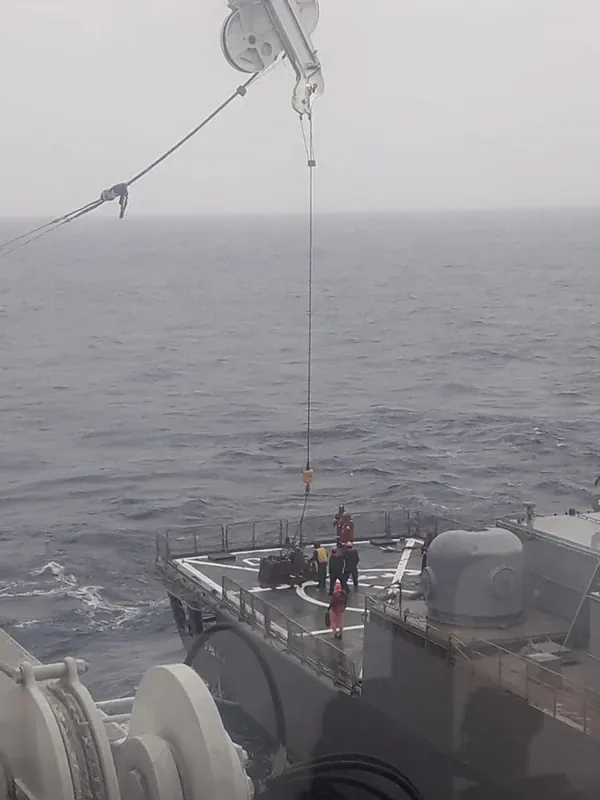 Fuentes navales precisaron que se sumó el ARA Almirante Brown a las maniobras. Si bien siempre hay una unidad de la Armada cercana al Seabed Constructor, este viernes trabajan en conjunto por primera vez.