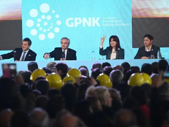 La vicepresidenta le agradeció al presidente de YPF, Pablo González, al que calificó como “un pingüino original”, recordó que Juan Domingo Perón inauguró uno de los primeros gasoductos del país y remarcó que “cuando la ambición está enfocada en estas obras, hay que apoyarla”.