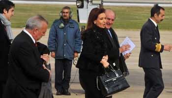 Tucumán, 9 de julio.- La presidenta Cristina Fernández de Kirchner llegó a las 12.40 a Tucumán para participar de los festejos conmemorativos del 195 aniversario de la Declaración de la Independencia y desde el aeropuerto "Benjamín Matienzo" se dirigió a la Casa Histórica, donde rindió homenaje a los próceres de 1816, tras lo cual participó del acto central en el Hipódromo local.