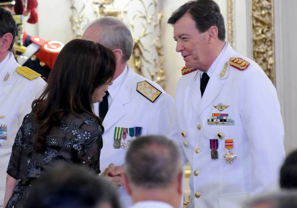 Sin la habitual presencia de militantes K, la presidenta Cristina Fernández encabezó ayer la ceremonia de ascenso de los nuevos jefes superiores de las tres Fuerzas Armadas, entre ellos al cuestionado titular del Ejército, César Milani, ascendido a teniente general.