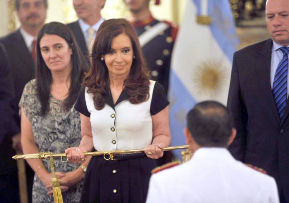 Vestida con un traje chemise negro y blanco, Fernández de Kirchner entregó los tradicionales sables a cada uno de los oficiales ascendidos de la Policía Federal, la Gendarmería y la Prefectura Naval. Se había especulado que la Presidenta aprovecharía la oportunidad para agradecer a los efectivos de esas tres fuerzas su accionar durante los saqueos y actos de violencia ocurridos días atrás durante los acuartelamientos de las policías de algunas provincias. Asimismo se esperaba que fuera la propia mandataria la que en ese marco anunciara el aumento de salarios para las tres fuerzas.