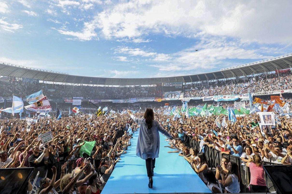 Los micros estacionados en las inmediaciones, los bombos de la hinchada y las parrillas desplegadas en los ingresos fueron la muestra final del retorno a las fuentes, después de haber renegado de las identificaciones partidarias durante el tránsito a las PASO. Ese viraje de la estética fue correspondido con la adopción de un mensaje superador de las diferencias entre peronistas, a través de la aritmética de la sumatoria: cada compañero deberá convencer a dos más, dijo Cristina, para ganarle las elecciones a Cambiemos.