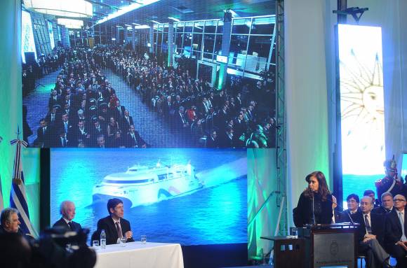 Además, la Presidenta destacó la visión empresaria de Juan Carlos López Mena, presidente de Buquebús, y lo elogió por su ‘vocación‘ y ‘perseverancia‘ en la administración del servicio de pasajeros. Agradeció además a López Mena ‘la confianza en el país‘, dado que ‘no es común encontrar hombres que inviertan‘.
