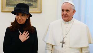 Fernández fue la primera jefa de Estado en ser recibida por el Santo Padre desde su elección como tal, y en la cita le regaló un bolso con mate, bombilla, yerbera, azucarera y un termo, elaborados por trabajadores del programa Argentina Trabaja. El Sumo Pontífice, por su parte, le entregó una mayólica con la imagen de la Iglesia de San Pedro.