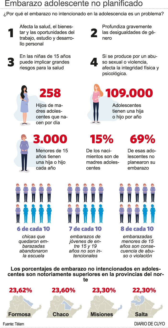 "El panorama no es halagüeño: en 2017 en Argentina nacieron 704.609 niños y niñas, de los cuales 94.000 son de madres adolescentes y 2.500 de menores de 15 años. De ese total de nacimientos, cerca del 22% era la segunda o tercera vez que tenía un hijo, lo que es escandaloso para esas niñas y para esos bebés, porque les estamos restando oportunidades", sostuvo Olga Isaza, representante adjunta de Unicef en Argentina, el fondo para la infancia de las Naciones Unidas.