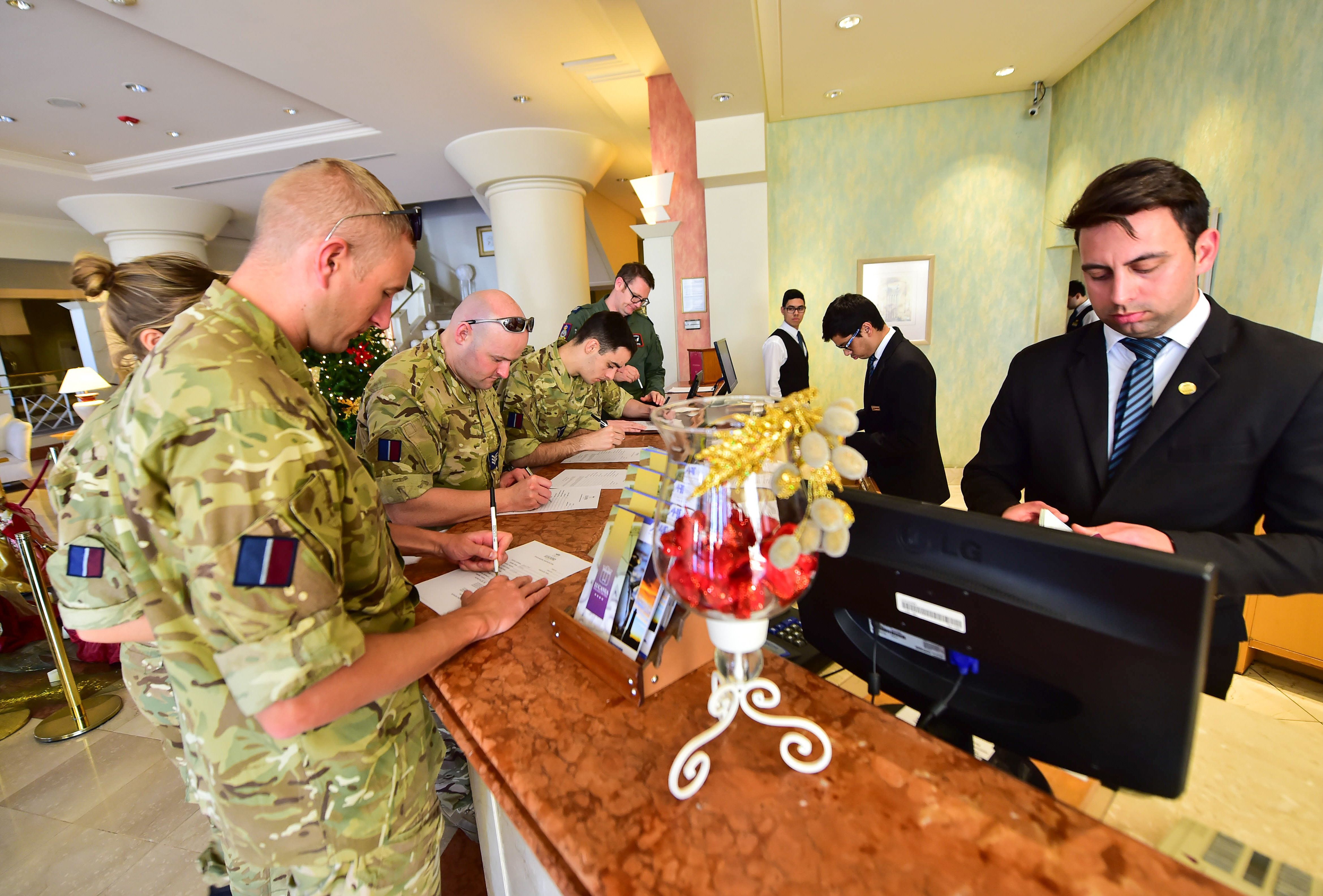 Británicos. Pilotos de la Real Fuerza Aérea Británica que vinieron a colaborar con la búsqueda del submarino se alojan en un céntrico Hotel en la ciudad de Comodoro Rivadavia.