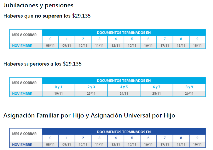 Calendario de pagos de noviembre de jubilaciones, PNC, AUH, AUE y otras asignaciones