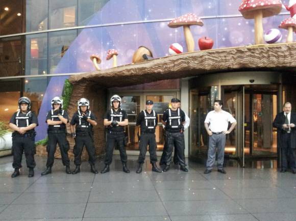 La causa de semejante disturbio radicó en que los vecinos que llegaron del barrio Mitre culpan a la construcción del shopping de que las calles se aneguen cuando llueve y por eso se movilizaron hasta la puerta para realizar una protesta.