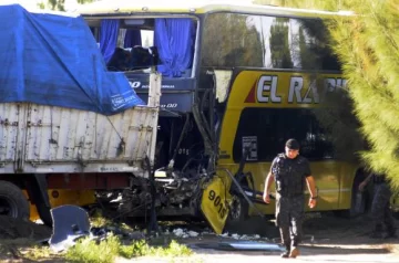Otra hipótesis que manejan los pesquisas es que el camión estaba parado en la banquina de la ruta y, al ingresar a la calzada, fue embestido por el micro por detrás. Fuente: Télam.