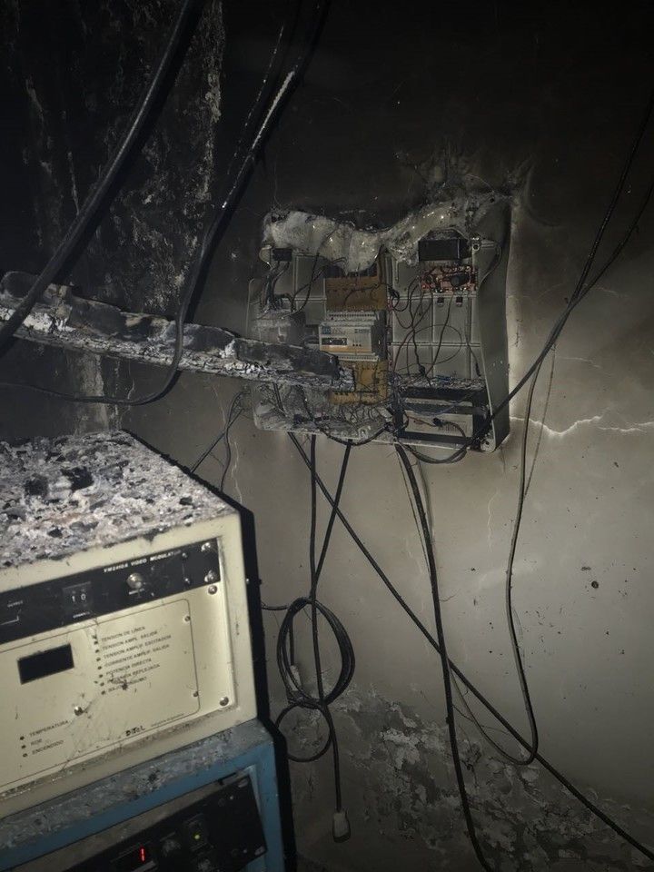 Tiraron abajo una torre e incendieraon equipos. Cortaron el teléfono y la televisión del área.