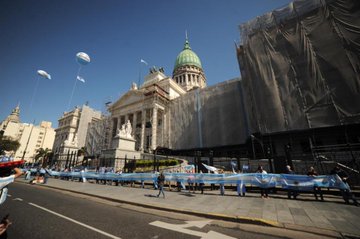 Las protestas arrancaron en la tarde del miércoles a pesar del mal tiempo, y realizaron también una vigilia. Este jueves al mediodía llevaron adelante un “banderazo” y luego se quedaron en el lugar para acompañar el desarrollo del debate en el seno del Senado.