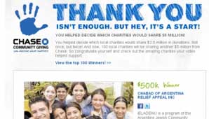 Buenos Aires, 26 de mayo.- Gracias al apoyo de miles de persona en todo el mundo, Ieladeinu ganó el Chase Community Giving, por lo que se hará acreedora de u$s500 mil para financiar ayudas para los chicos que más lo necesitan.