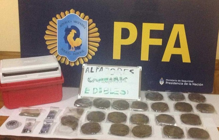 Peritos de la Policía Federal realizaron un análisis y constataron la presencia de marihuana en los alfajores, que estaban recubiertos de chocolate y perfectamente empaquetados.