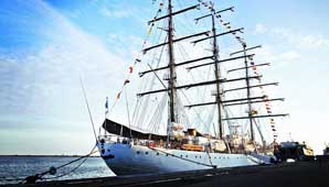 El buque escuela realizó una escala en Tema como parte de su misión de entrenamiento, pero el 2 de octubre se le impidió abandonar el puerto por decisión de una corte de Ghana, que acató un pedido por un grupo inversor de las Islas Caimán, que reclama el cobro de unos 370 millones de dólares por parte del Estado argentino.