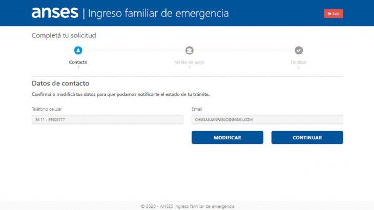Acto seguido, los beneficiarios deberán completar la solicitud del IFE, cumpliendo 3 pasos.