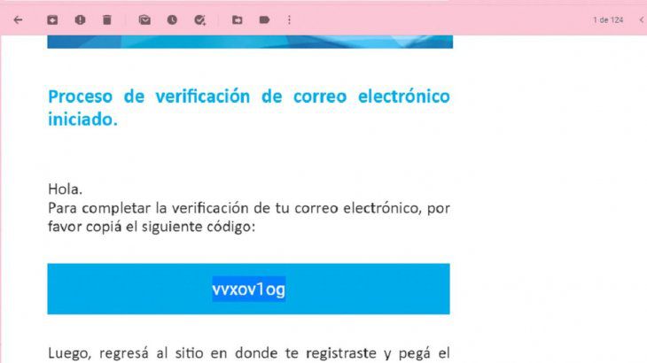 Luego, los beneficiarios recibirán un código de verificación de correo electrónico. Deberán copiar el código recibido y pegarlo en la página en la que se realiza el trámite.