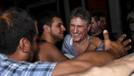 Fueron varios los dirigentes kirchneristas que llegaron a la vivienda de Boudou a poco de su liberación. Uno de los primeros fue el ex titular de la Afsca, Martín Sabatella.