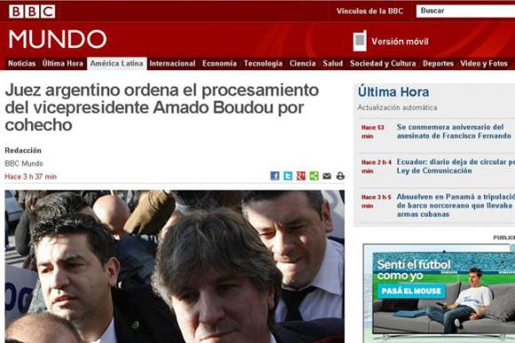 Buenos Aires, 28 de junio.- Tras el procesamiento de Amado Boudou por cohecho y negociaciones incompatibles en la causa Ciccone, los principales medios del mundo dieron cuenta de la noticia.