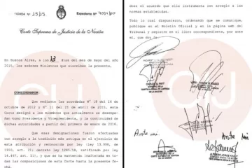 La nueva acordada firmada ayer dispuso ‘declarar que en la designación de autoridades se ha puesto en ejercicio la atribución reconocida a esta Corte‘ para designar a sus autoridades.