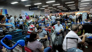 Buenos Aires, 13 de enero.- Cientos de pasajeros de diversos vuelos de la empresa Aerolíneas Argentinas continuaban a la espera de poder volar, a raíz de una medida de fuerza realizada por un grupo de trabajadores del sector de rampa del aeropuerto de Ezeiza.