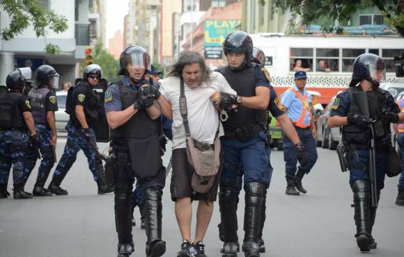 El comisario mayor Néstor Gambarte dijo que ante ello fueron detenidas ‘nueve personas‘ y remarcó que a raíz de los disturbios cinco agentes sufrieron ‘contusiones leves‘.