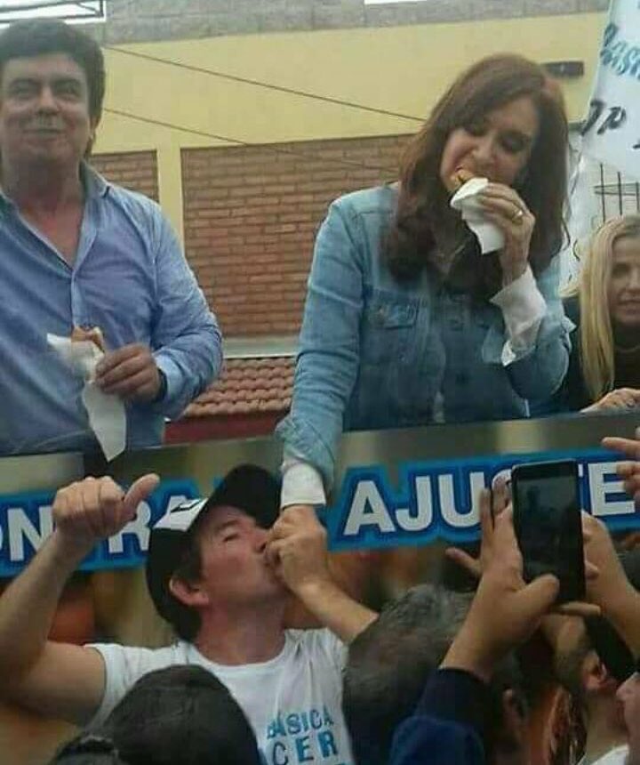 Arriba del móvil que la trasportaba, Cristina -vestida de camisa de jean y calzas- bailó al ritmo de la música de la orquesta que se reproducía por parlantes, saludó a los simpatizantes que se acercaban para tocarla y hasta comió una empanada que le convidaron.