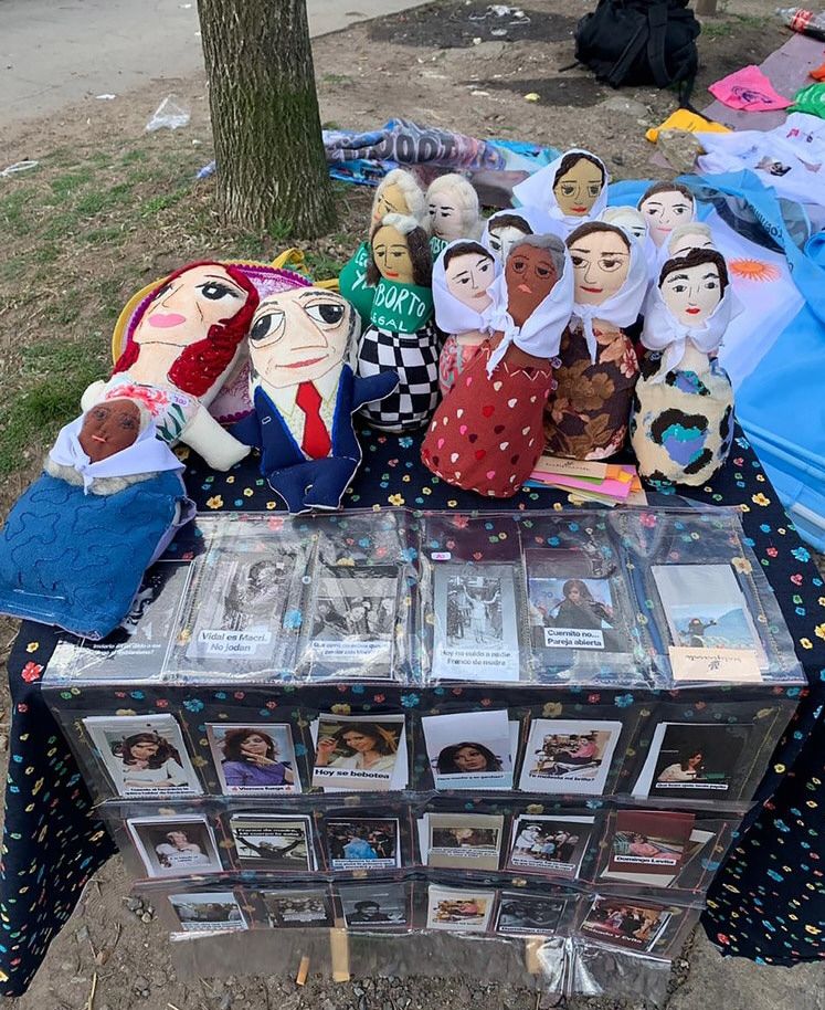 Entre otras cosas, los asistentes podían comprarse remeras con frases como "María Eugenia Virtual", "Yo caí en la escuela pública", "Ella le gana" y "La patria es el otro". También había muñecos de Néstor y Cristina Kirchner, de madres y abuelas de Plaza de Mayo, postales, banderas y otro tipo de productos.