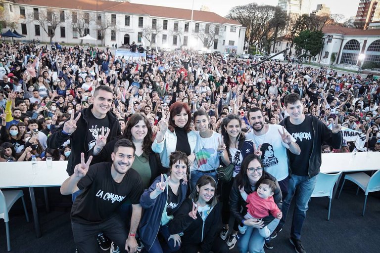 “Yendo a la ex Esma, donde vamos a participar del cierre del Encuentro Nacional de Jóvenes de La Cámpora”, había publicado la ex mandataria a través de redes sociales por medio de un posteo realizado 17:15 de este sábado cuando anunció su presencia en el acto de cierre del Encuentro Nacional de Jóvenes de La Cámpora.