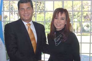 Además de participar de la reunión de la Unasur, Cristina asistirá el lunes al acto de reasunción de Rafael Correa, quien resultó reelecto hasta 2013 en las elecciones generales de abril último.
