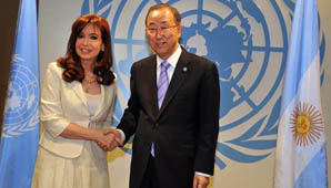 Estados Unidos, 22 de Septiembre.- Tras su paso por Roma, la presidente Cristina Kirchner se encuentra en Nueva York, donde su primera actividad fue una audiencia con Ban Ki-moon, secretario general de las Naciones Unidas. Ahora recibe en el Consulado argentino a representantes del sindicalismo internacional.