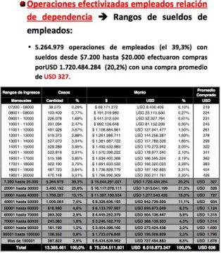 Bueno, pero mejor te muestro el cuadro. Ahí se ven los ingresos, los porcentajes, lo que se compra, en fin… una radiografía completa de la venta del dólar ahorro…