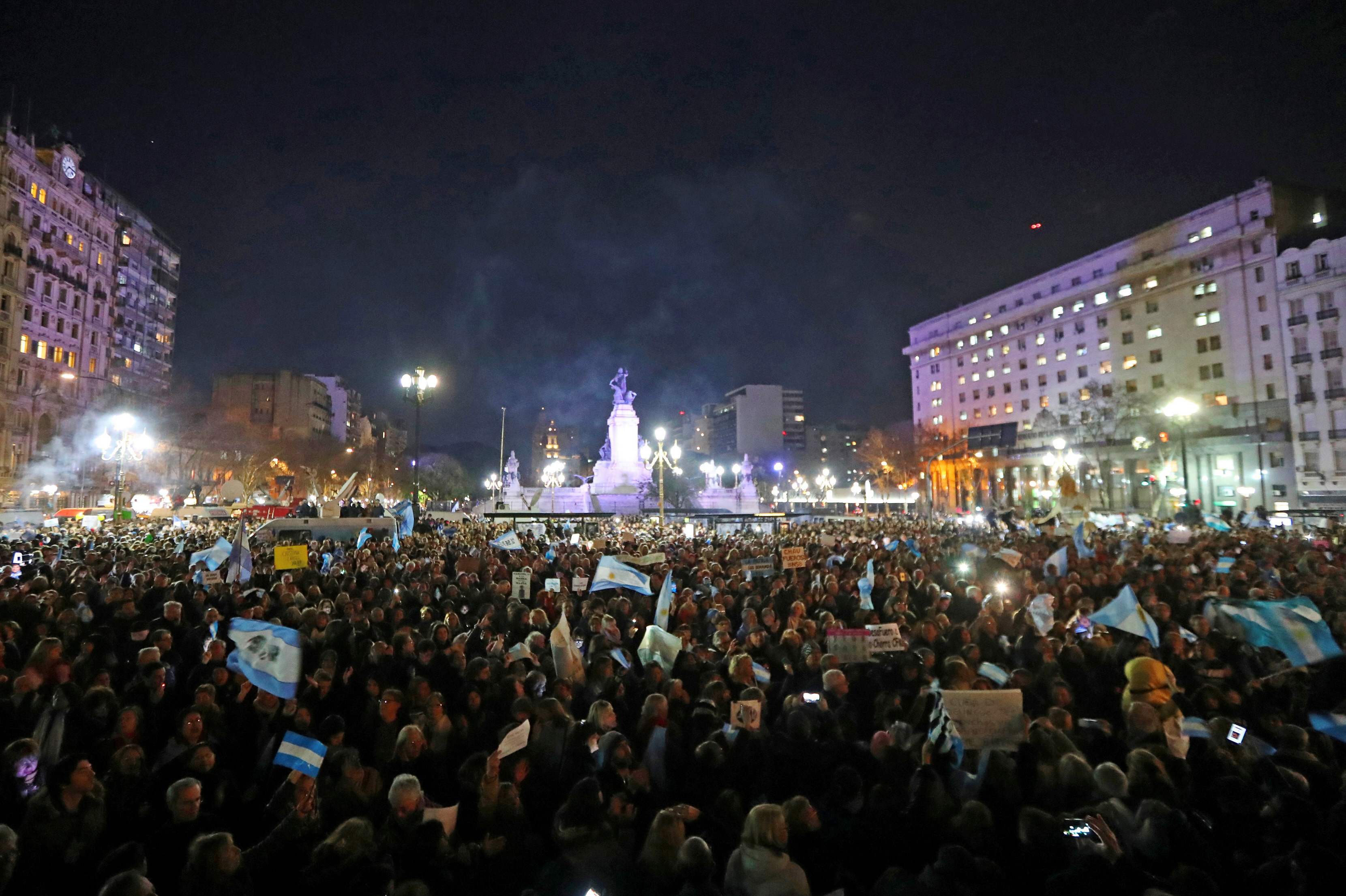 "Presa la queremos", "No vuelven más", "Argentina sin Cristina" y "Devuelvan lo robado", "No a un Congreso cómplice", "Ley de Extinción de Dominio ya", fueron los principales cánticos que se escucharon anoche en la multitudinaria marcha frente al Congreso para pedir el desafuero de Cristina Kirchner. Aunque no faltaron las pancartas con referencias a un "Congreso cómplice" o los "Bolsos llenos, heladeras vacías". La convocatoria, que se realizó con los hashtags #21A, #21AVoyAEstar y #21ATodosAlCongreso, se replicó en otras ciudades del país, como Rosario, San Rafael, San Luis, Córdoba y Neuquén, San Juan, entre otras. El temario de la protesta incluía el reclamo de la sanción de la Ley de Extinción de Dominio, una figura que habilitará al Estado a recuperar bienes obtenidos por el delito, cuyo proyecto será tratado hoy en la misma sesión del Senado.